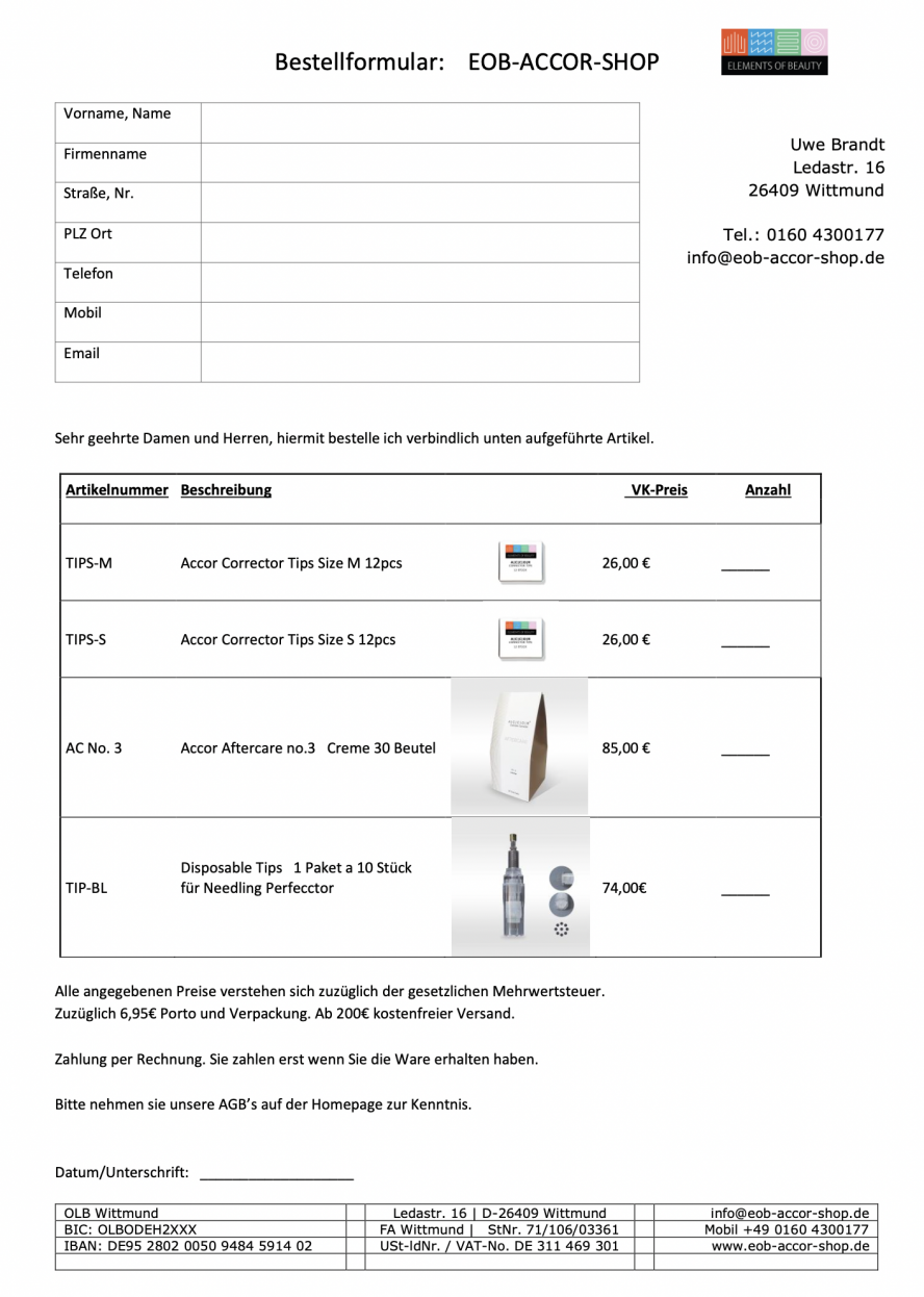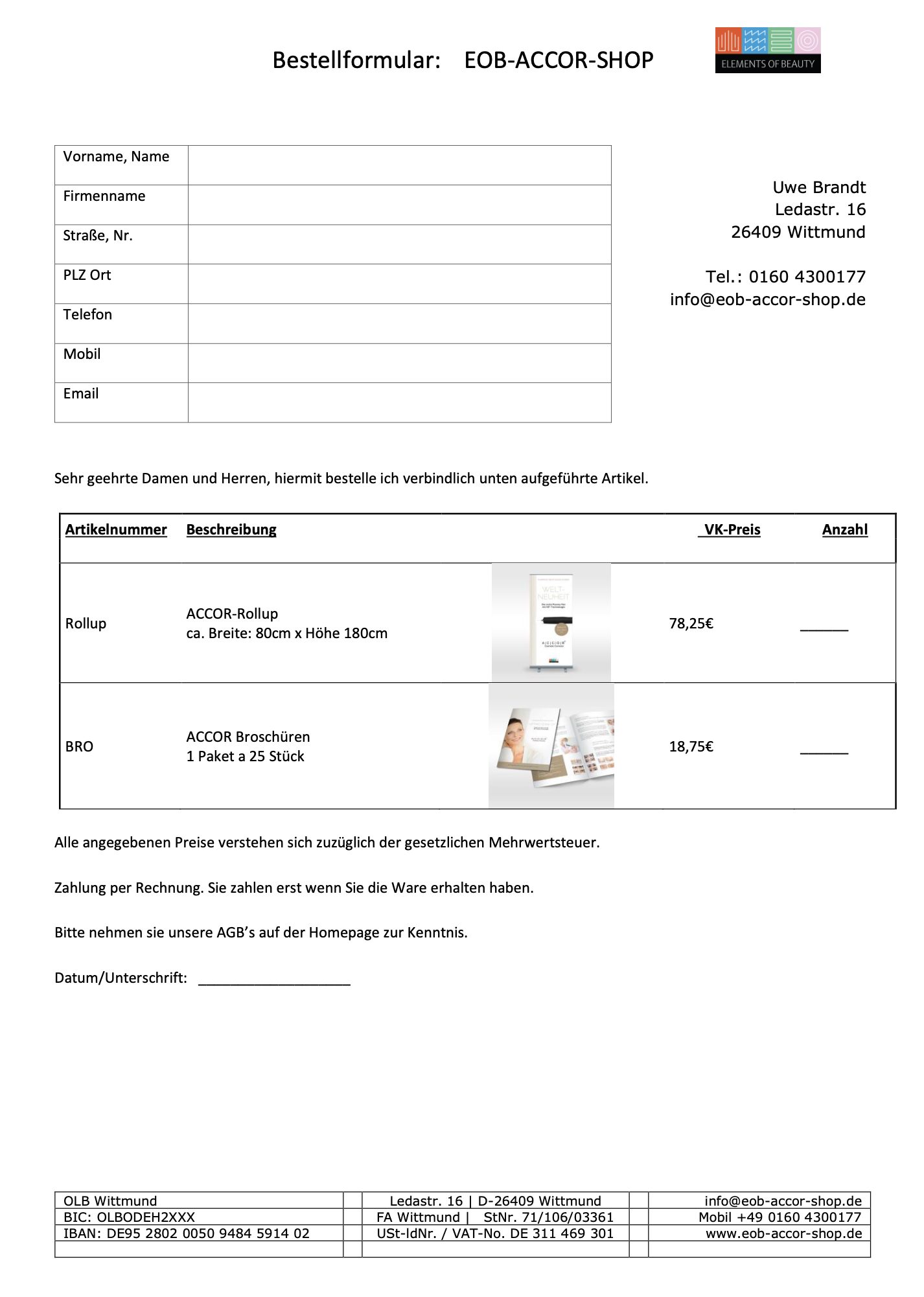 Zum Speichern der Bestellformulare mit der Mouse über das Formular gehen. Rechte Mousetaste drücken und Bilder sichern. Dieses gilt für Ihre erste Bestellung. Danach reicht eine formlose Email an: